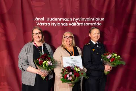 Välfärdsområdesdirektör Sanna Svahn belönade teamet som fick flest röster i personalomröstningen med en penningbelöning på 3 000 euro och de två följande teamen med en penningbelöning på 1 000 euro. Priserna kan användas för gruppens utvecklings- och rekreationsverksamhet. Vinnarna utsågs vid chefsforumet på Hybridarenan Hype i Esbo den 3 december.